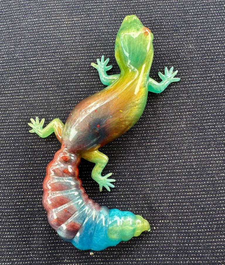 Eine Echse aus Epoxidharz - kein Teil gleicht dem Anderen.